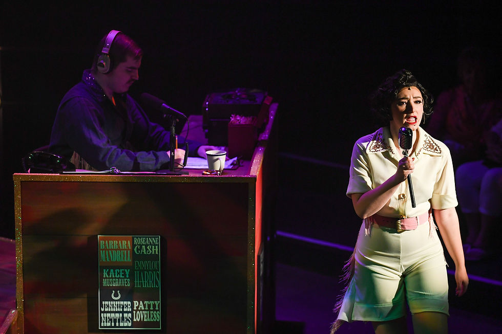 DJ Little Big Man spins while Patsy Cline (Samantha Lee Mason) sings. Photo: Bill Crowell
